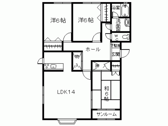 | 詳細間取 | 3LDK (洋6帖×1、洋6帖×1、和6帖×1、LDK14帖) | ||