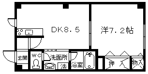 | 詳細間取 | 1DK (洋7.2帖×1、DK8.5帖) | ||