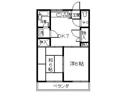 | 詳細間取 | 2DK (和6帖×1、洋6帖×1、DK7帖) | ||