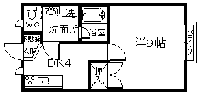 | 詳細間取 | 1DK (洋9帖×1、DK4帖) | ||